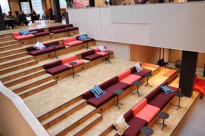 Åpent areal i hjertet av SiS studenthus. Utstyrt med LED-vegg, og flere mikrofoner. Lagt opp til tale- og lydavspilling.